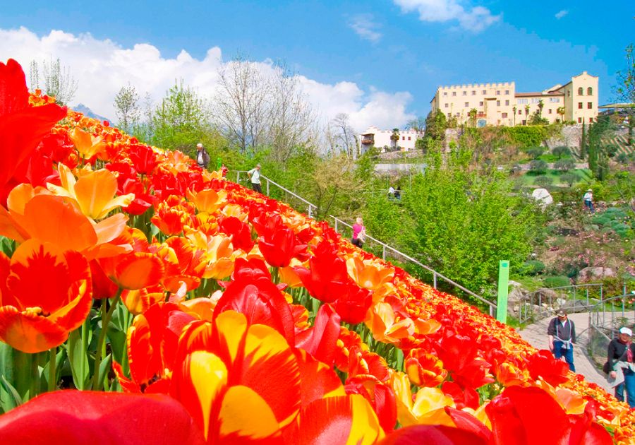 Die Gärten von Schloss Trauttmansdorff, 2001 eröffnet, zählen zu den Highlights Merans und zu den beliebtesten Ausflugszielen Südtirols. Auf 12 Hektar erwarten dich über 80 Gartenlandschaften aus aller Welt – ermöglicht durch das milde Klima der Kurstadt. Die Anlage ist in vier Gartenwelten gegliedert: Die "Waldgärten" zeigen Nadelhölzer aus Nordamerika und Asien, Farne, Fossilien sowie eine Voliere mit Papageien.