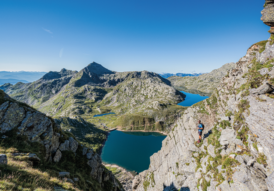 Die farbenreiche Spronser Seenplatte liegt nordwestlich von Dorf Tirol, inmitten des Naturparks Texelgruppe zwischen 2.117 und 2.589 Höhenmetern. Die größte hochalpine Seenplatte der Ostalpen besteht aus zehn Hochgebirgsseen, die unzweifelhaft zu den schönsten Bergseen im Alpenraum zählen. Einige der Namen – Langsee, Grünsee, Schwarzsee, Schiefersee – verraten die Dimension und Vielfarbigkeit der Gewässer.